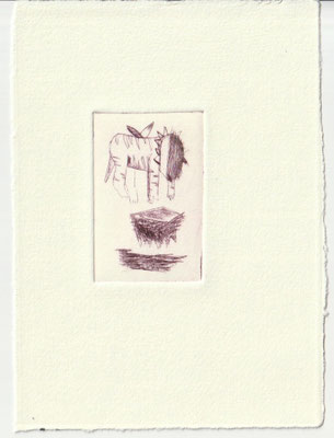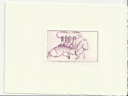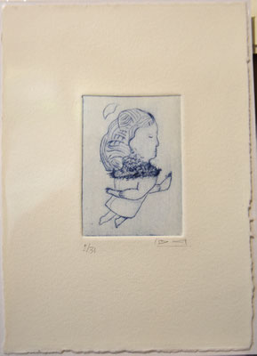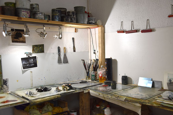 Impressions de gravures en pointes sèches sur zinc, en couleurs selon l'humeur et parfois en chine-collé.